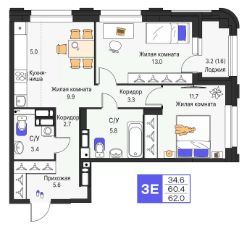 • В санузлах: керамическая плитка на полу и стенах и вся сантехника