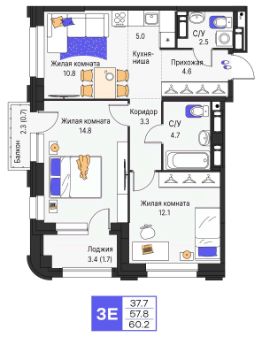• В санузлах: керамическая плитка на полу и стенах и вся сантехника
