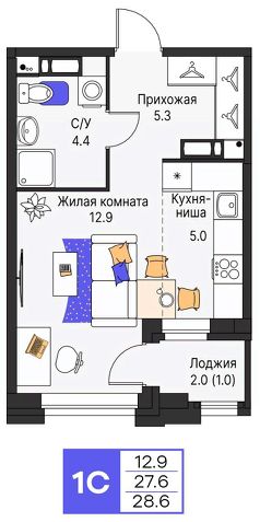 Продается 1-комнатная квартира N 435. Живые кварталы Моменты в центре Перми. Старт продаж!