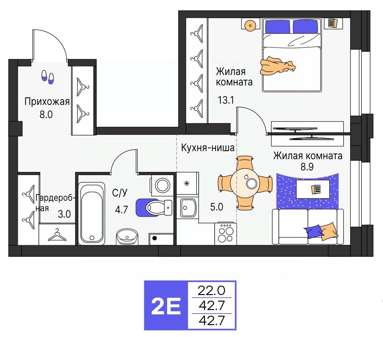 • Большой выбор планировок от студий до квартир с террасами
