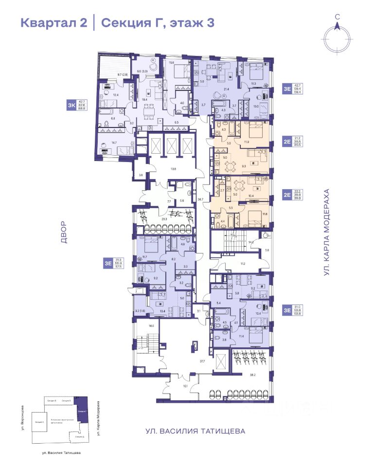 Продается 3-комнатная квартира N 237. Живые кварталы Моменты в центре Перми. Старт продаж!
