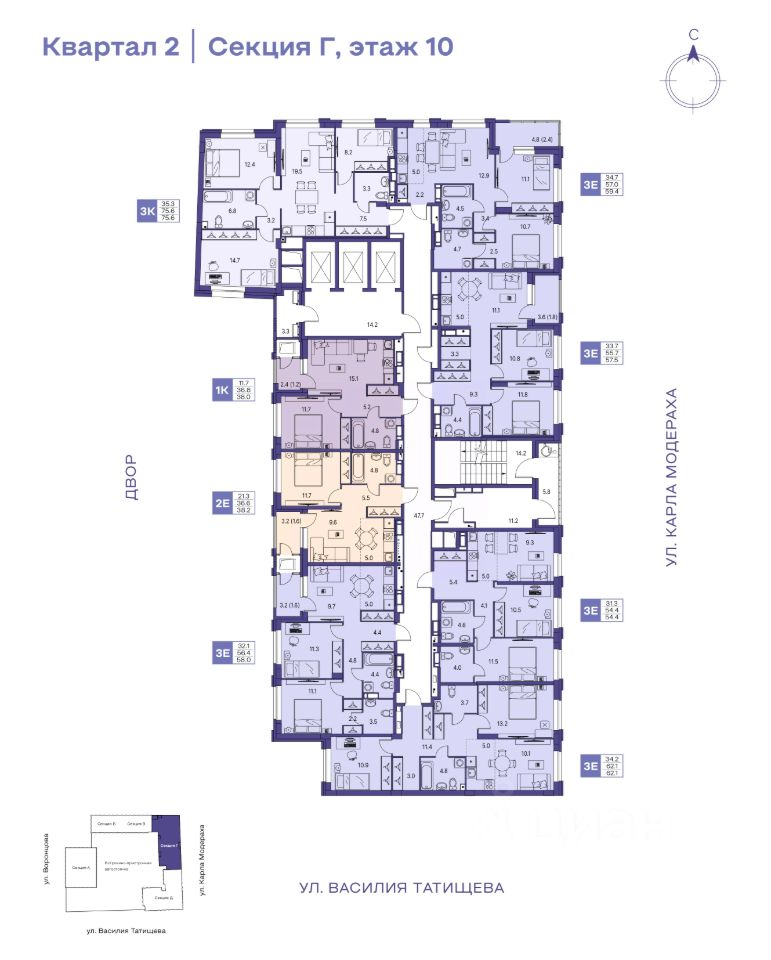 • Большой выбор планировок от студий до квартир с террасами
