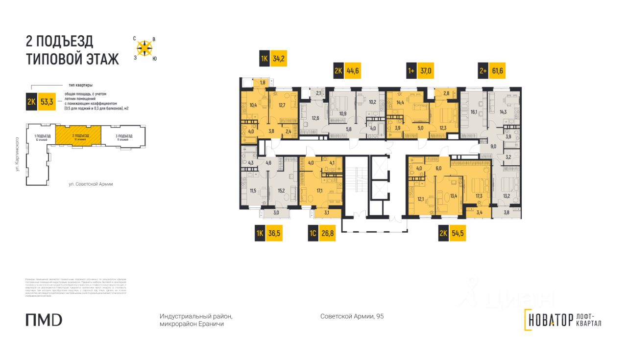 В доме 3 подъезда комфортной средней этажности 11-12 этажей