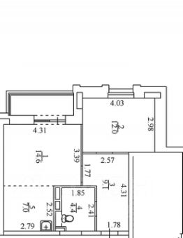 Кухня-гостиная , Выделена ниша под кухонный гарнитур (6.90м)