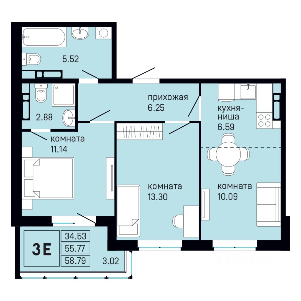 Общая площадь58,79 м²