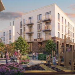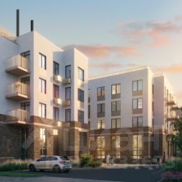 Архитектурный облик дома выполнен в современном лаконичном стиле с использованием долговечных фасадных материалов. Большие окна обеспечивают максимум естественного света в квартирах.