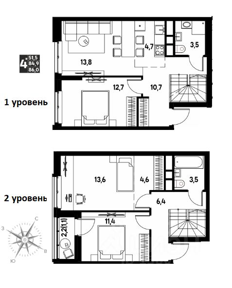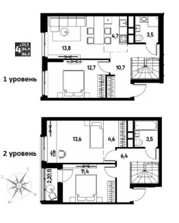86 м²