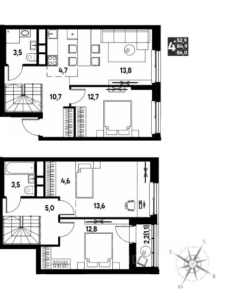 52,9 м²