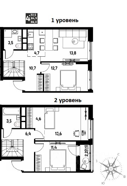 86 м²