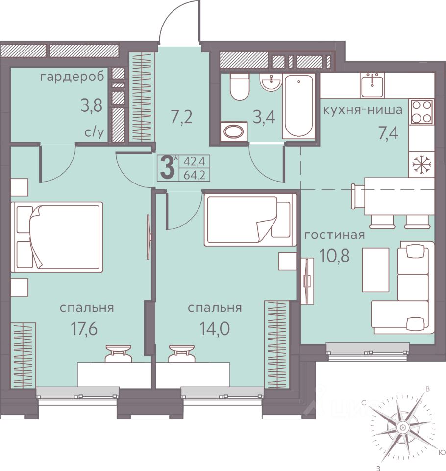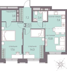 64,2 м²