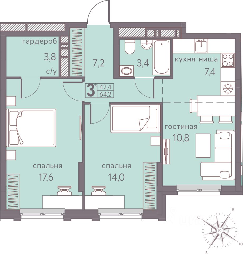 Общая площадь64,2 м²