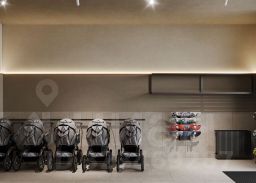 Концепция проекта продолжается интерьером лобби. Здесь преобладают естественные оттенки и текстуры, а мебель выполнена из экологичных материалов. Для удобства жителей созданы собственные колясочные и велосипедные, а для заботы о домашних любимцах предусмотрена лапомойка.