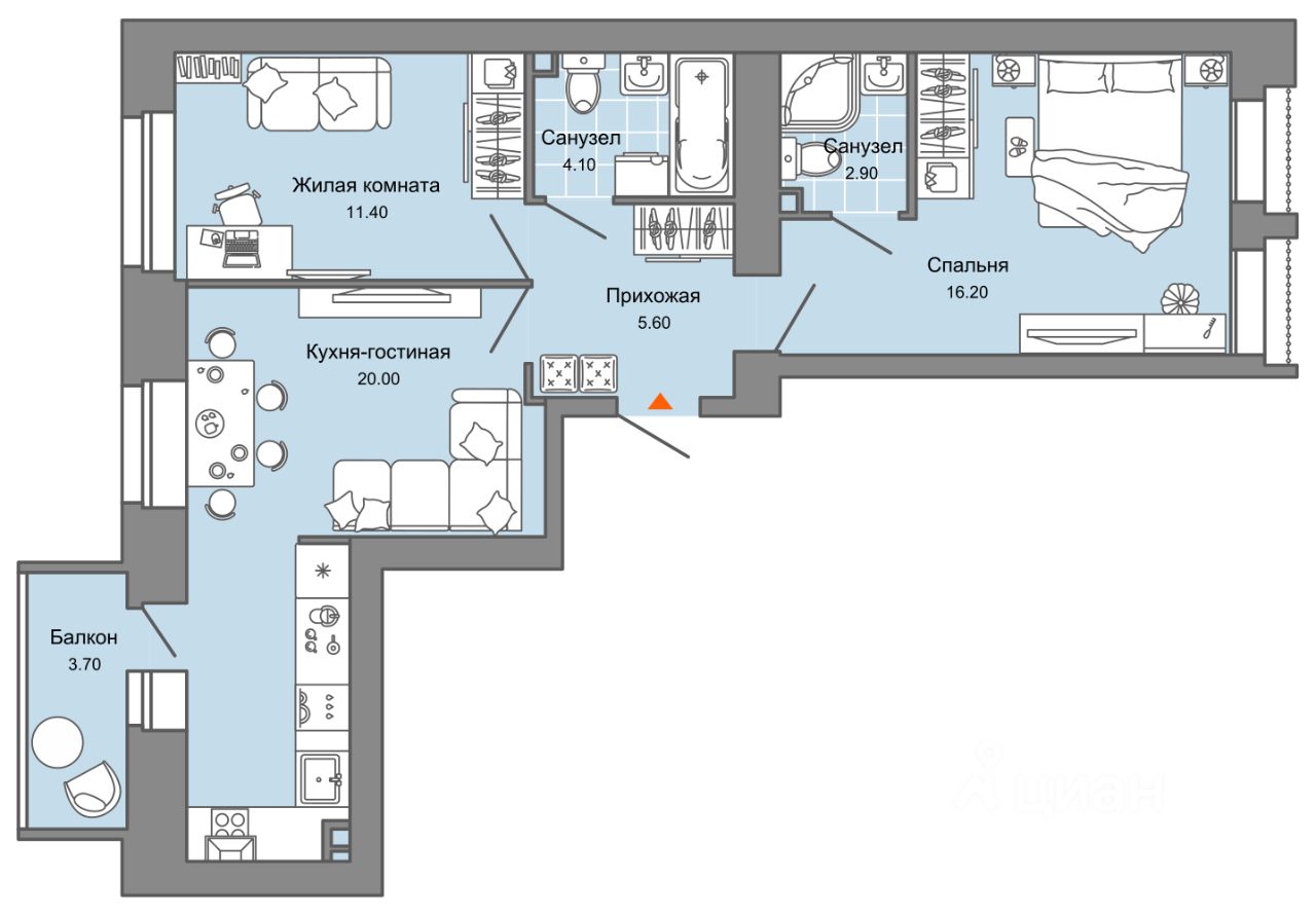 Особенность планировки - высокие потолки более 4 метров.Специально для тех, кто любит еще большее ощущение свободы и широты!