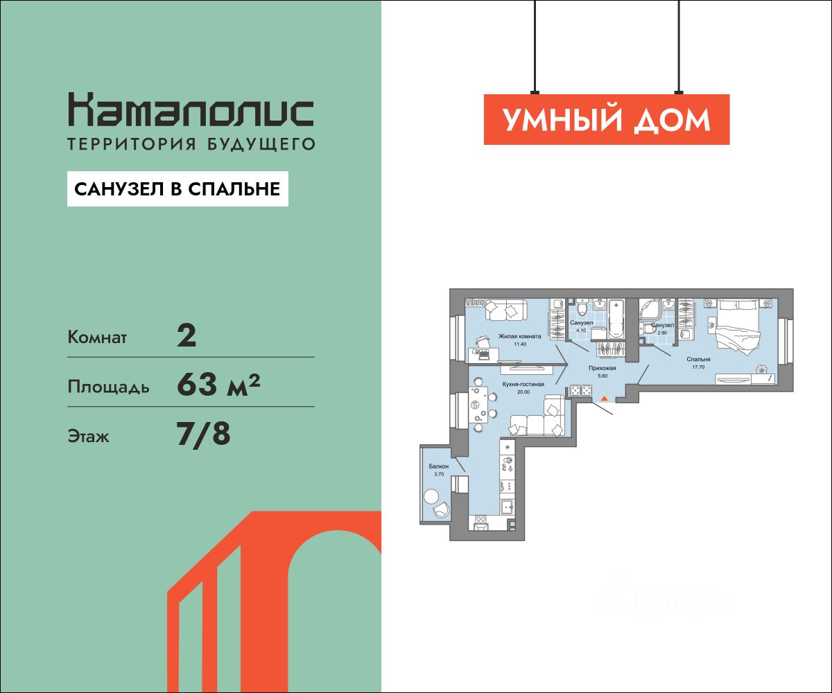 В новом жилом комплексе комфорт+ класса "Камаполис", расположенном на берегу реки Камы, продается 2-комнатная квартира площадью 63.00 кв. м. с предчистовой отделкой. Квартира находится в 3 доме. Девелопер проекта - "Железно".