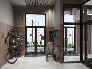 Концепция проекта продолжается интерьером лобби. Здесь преобладают естественные оттенки и текстуры, а мебель выполнена из экологичных материалов. Для удобства жителей созданы собственные колясочные и велосипедные, а для заботы о домашних любимцах предусмотрена лапомойка.