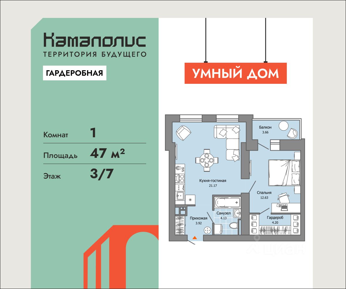 В новом жилом комплексе комфорт+ класса "Камаполис", расположенном на берегу реки Камы, продается 1-комнатная квартира площадью 47.00 кв. м. Квартира находится в 4 доме. Девелопер проекта - "Железно".