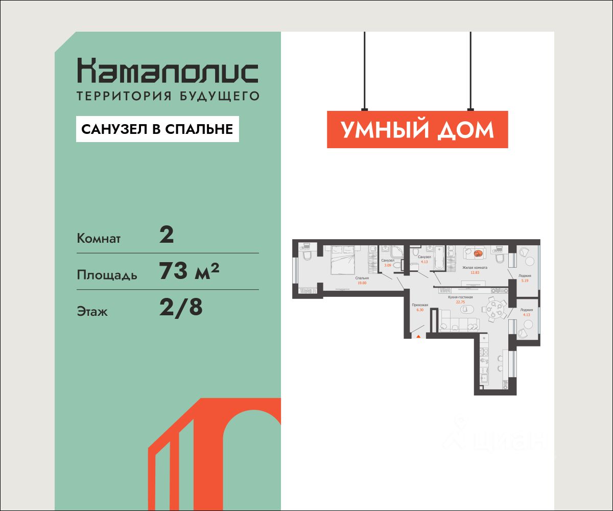 В новом жилом комплексе комфорт+ класса "Камаполис", расположенном на берегу реки Камы, продается 2-комнатная квартира площадью 73.00 кв. м. Квартира находится в 5 (1 этап) доме. Девелопер проекта - "Железно".