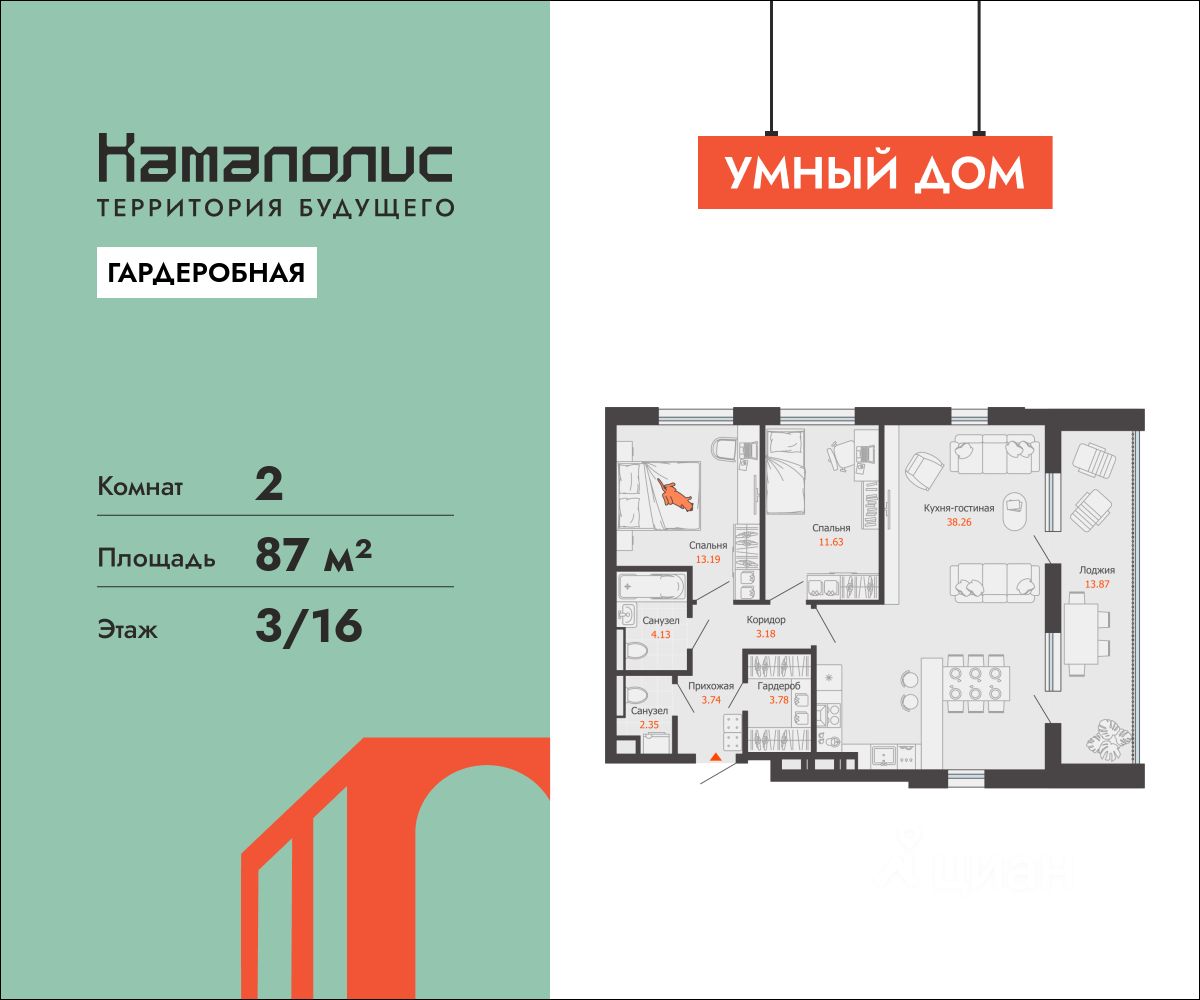 В новом жилом комплексе комфорт+ класса "Камаполис", расположенном на берегу реки Камы, продается 2-комнатная квартира площадью 87.00 кв. м. Квартира находится в 5 (1 этап) доме. Девелопер проекта - "Железно".