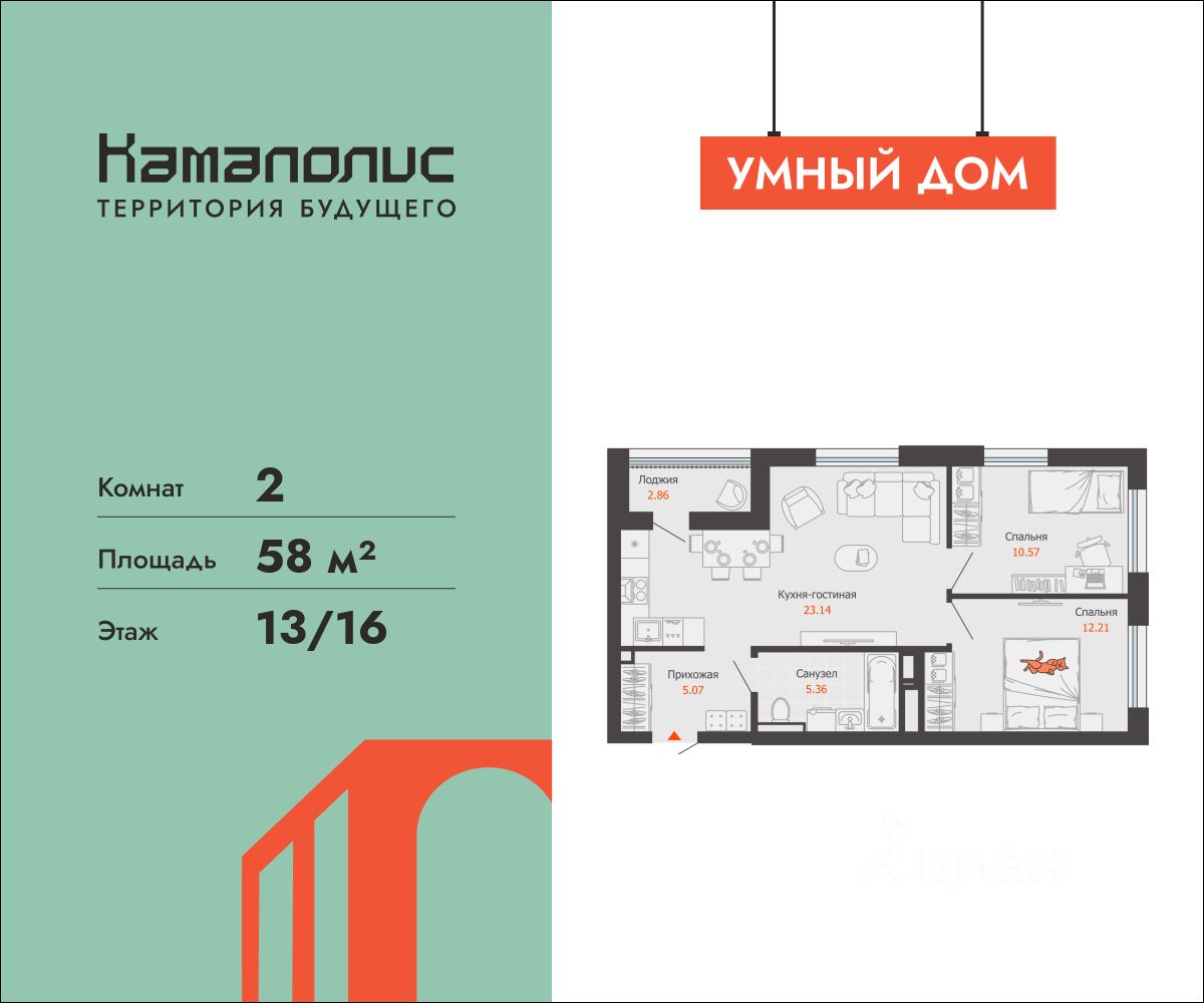 В новом жилом комплексе комфорт+ класса "Камаполис", расположенном на берегу реки Камы, продается 2-комнатная квартира площадью 58.00 кв. м. Квартира находится в 5 (1 этап) доме. Девелопер проекта - "Железно".