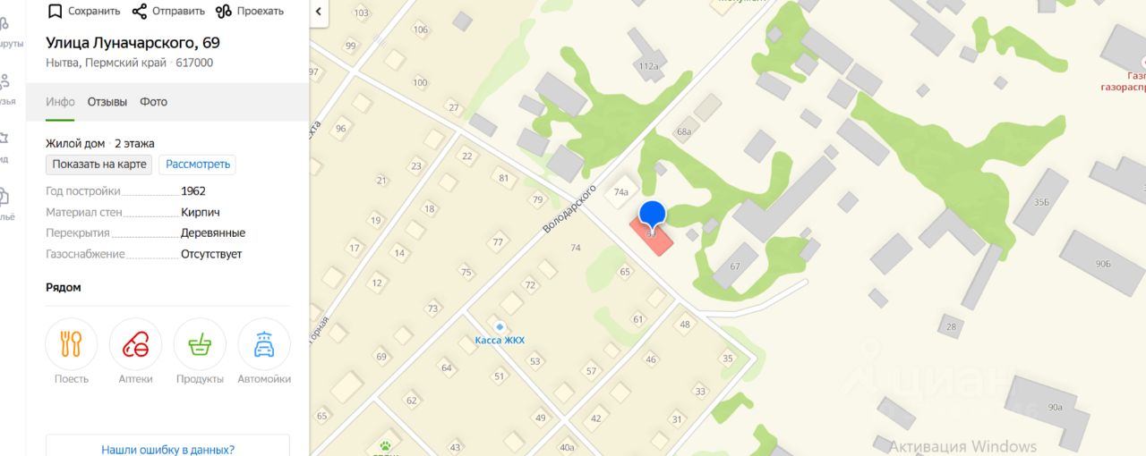 1-комнатная квартира, общ.пл.30,5кв.м., кад.59:26:0610701:122, соб-к: Белослудцева Н. М., адрес: Пермский край, г.Нытва, ул. Луначарского,69-7 (Сведения о зарегистрированных лицах и капремонте отсутствуют).