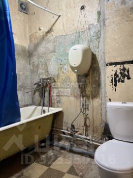 совмещенный санузел, в котором уже выполнен демонтаж старой плитки, поменяны трубы, чтобы сделать ремонт сразу под себя