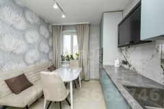 Квартира с качественной отделкой на кухне, в ванной комнате. В остальных комнатах отделка от застройщика.