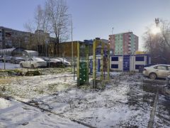 Перед домом - стадион и Школа 41 им. П.А. Соловьева, Детский сад 364.