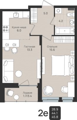 Общая площадь45,8 м²