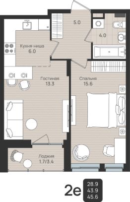 Общая площадь45,6 м²