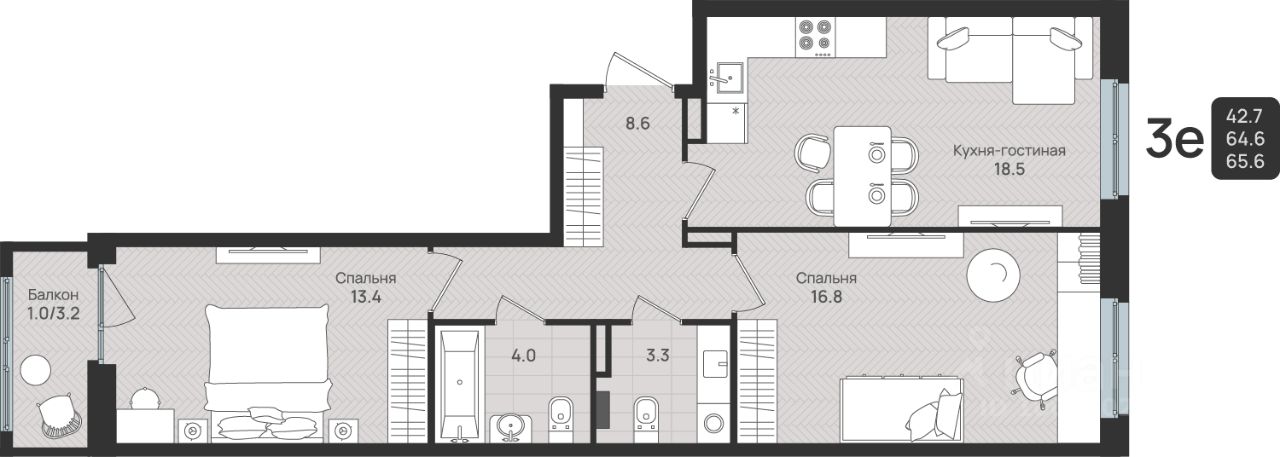 Общая площадь65,6 м²
