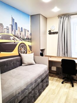 В подарок новым владельцам остаются кухонный гарнитур, три встроенных шкафа-купе в гостиной, спальне и прихожей, а также письменный стол в детской с системой хранения.