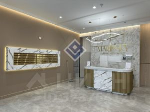 Комфорт: Просторная парадная с высокими потолками, дизайнерским освещением и мебелью.