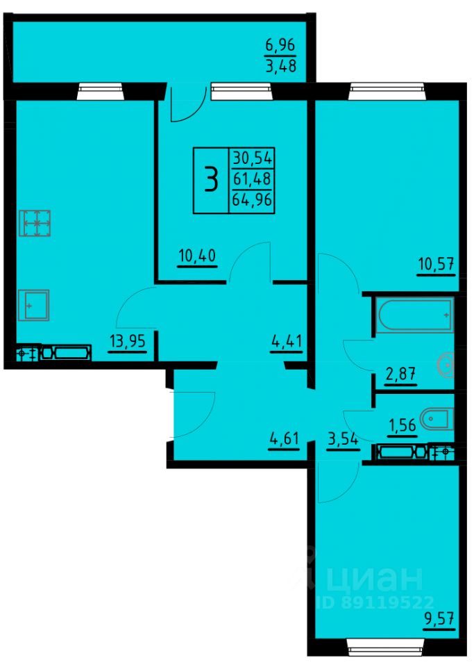 Общая площадь64,96 м²