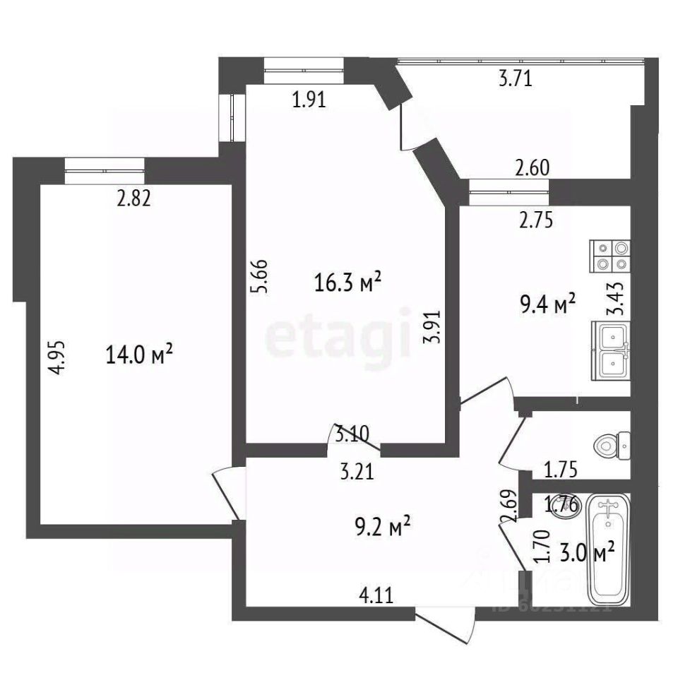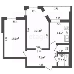 Квартира расположена в кирпичном доме, комфортная площадь. Просторная кухня, площадью 9.4м. Приборы учета воды , электроэнергии установлены.