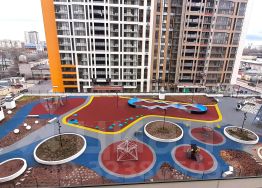 -детская площадка, подземный и наземный паркинг.