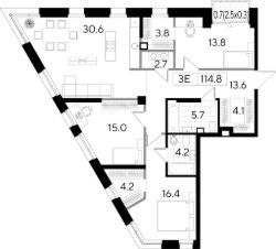Красивый сценарий жизни в квартире открытой планировки* площадью 115.8м2 в клубном доме Строганов на Пермской 86. *Резиденты могут воспользоваться готовыми планировочными решениями организации пространства.