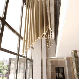 Деликатную элегантность и уют интерьеров дома подчеркивает природная палитра камня, стекла и дерева в отделке. Их дополняют стеклянный атриум лобби, трековое освещение и контурная подсветка.