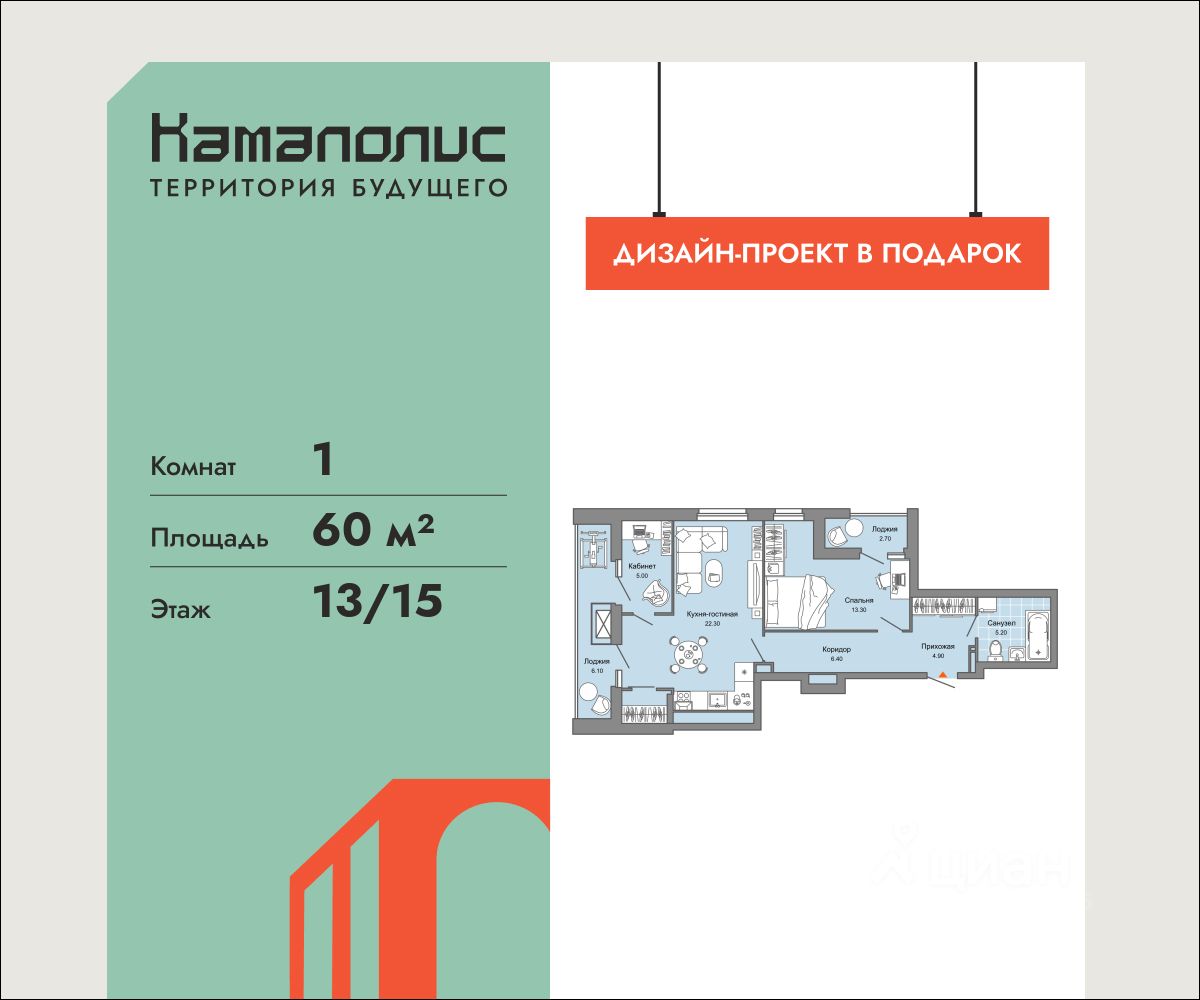В новом жилом комплексе комфорт+ класса "Камаполис", расположенном на берегу реки Камы, продается 1-комнатная квартира площадью 60.00 кв. м. Квартира находится в 2 доме. Девелопер проекта - "Железно".