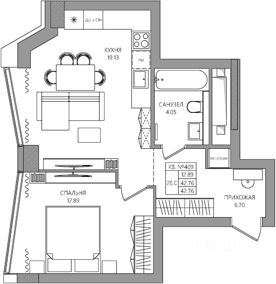 42,76 м²