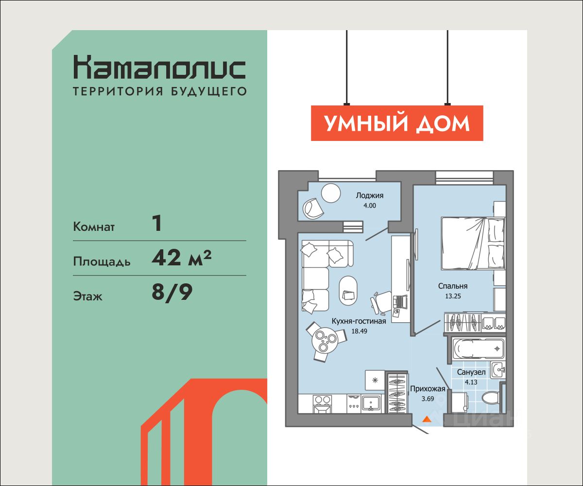 В новом жилом комплексе комфорт+ класса "Камаполис", расположенном на берегу реки Камы, продается 1-комнатная квартира площадью 42.00 кв. м. Квартира находится в 4 доме. Девелопер проекта - "Железно".