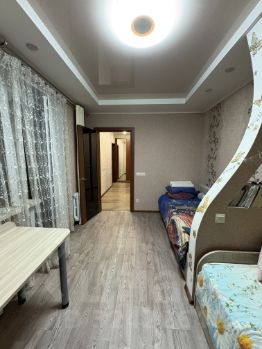 Квартира расположена в районе с развитой инфраструктурой: в шаговой доступности магазины, спортшкола, парк для прогулок, бассейн.