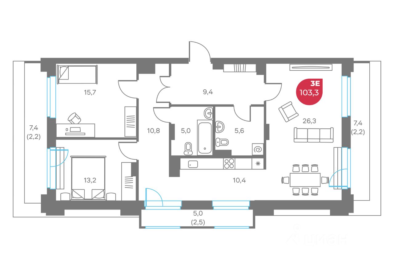 Общая площадь103,3 м²