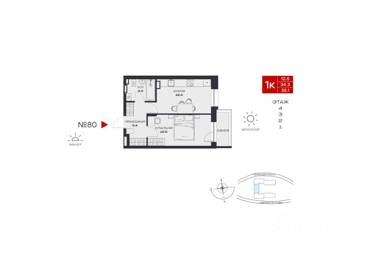 Продаётся 1-комнатная квартира в строящемся доме (Садовый, 73), срок сдачи: IV-кв. 2027, общей площадью 35.1 кв.м., на 1 этаже. Новый жилой комплекс "Миниполис Култаево Парк" от Специализированного застройщика "Миниполис Култаево Парк" расположен в с. Култаево по ул. Садовый бульвар.
