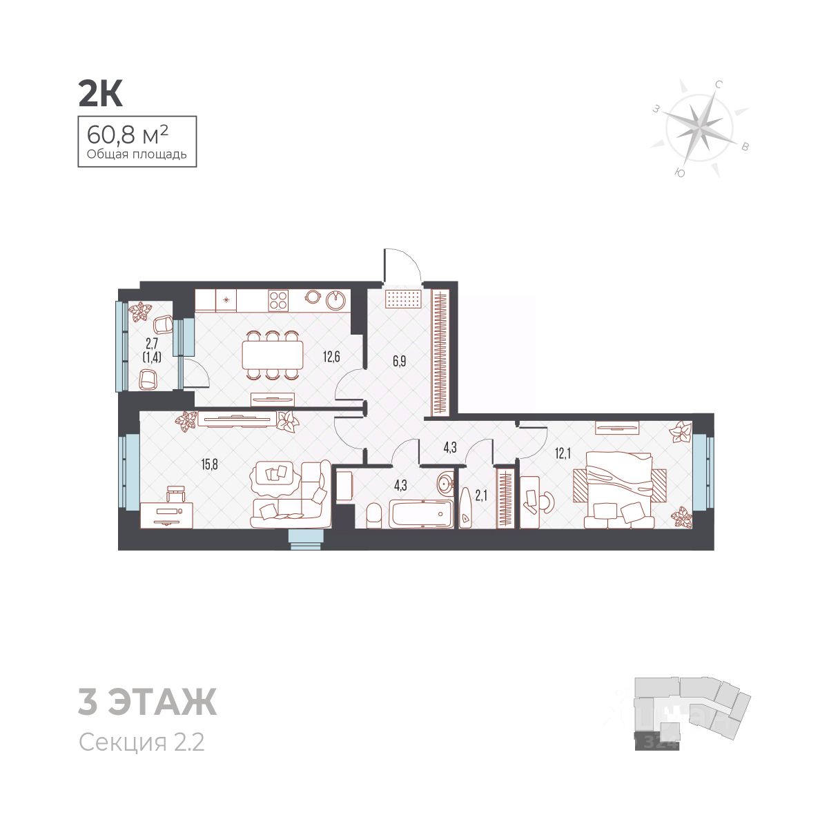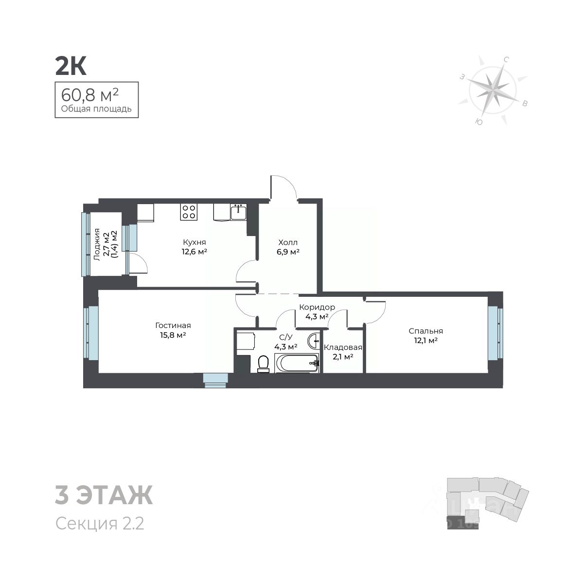 Общая площадь60,8 м²
