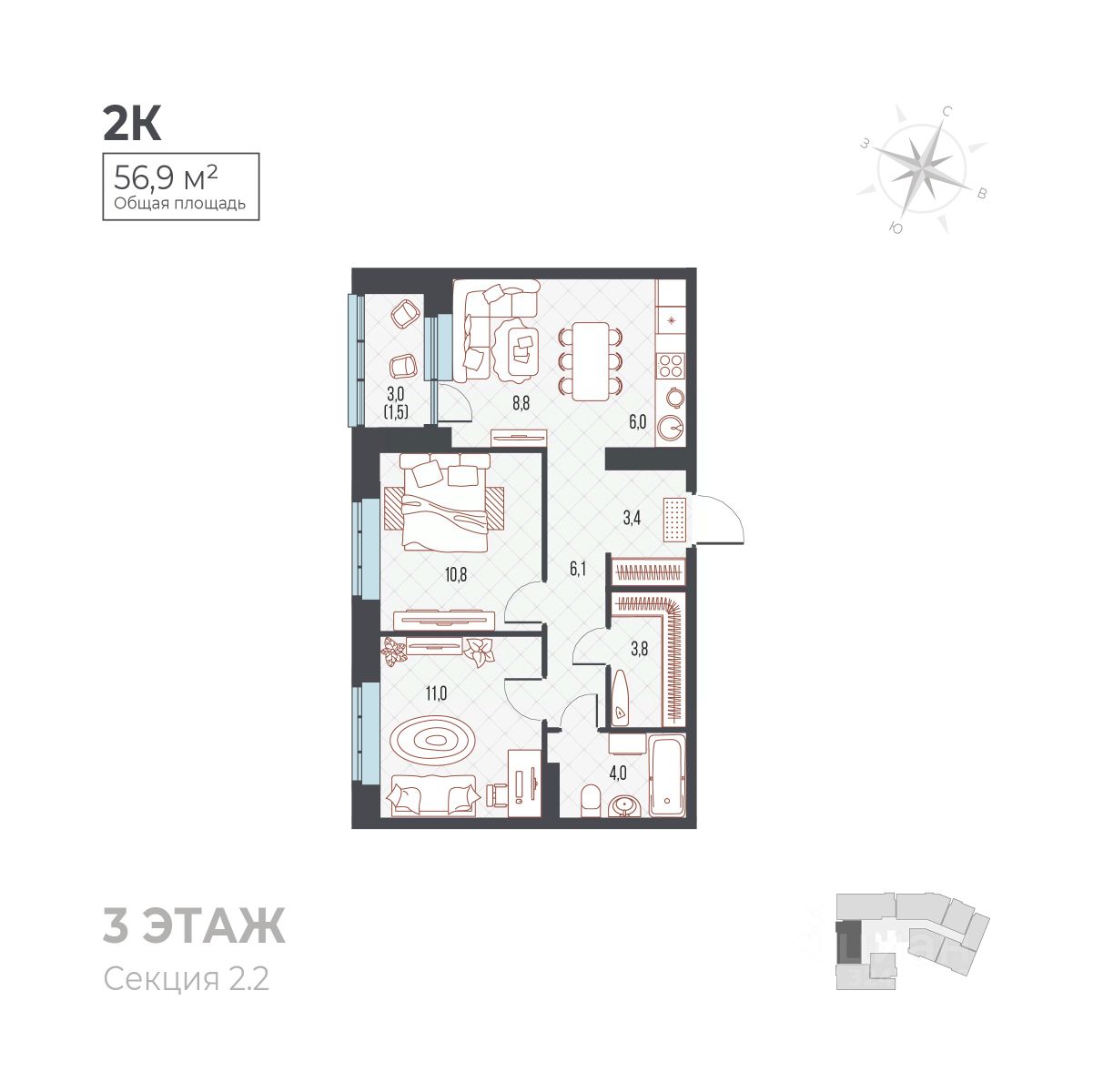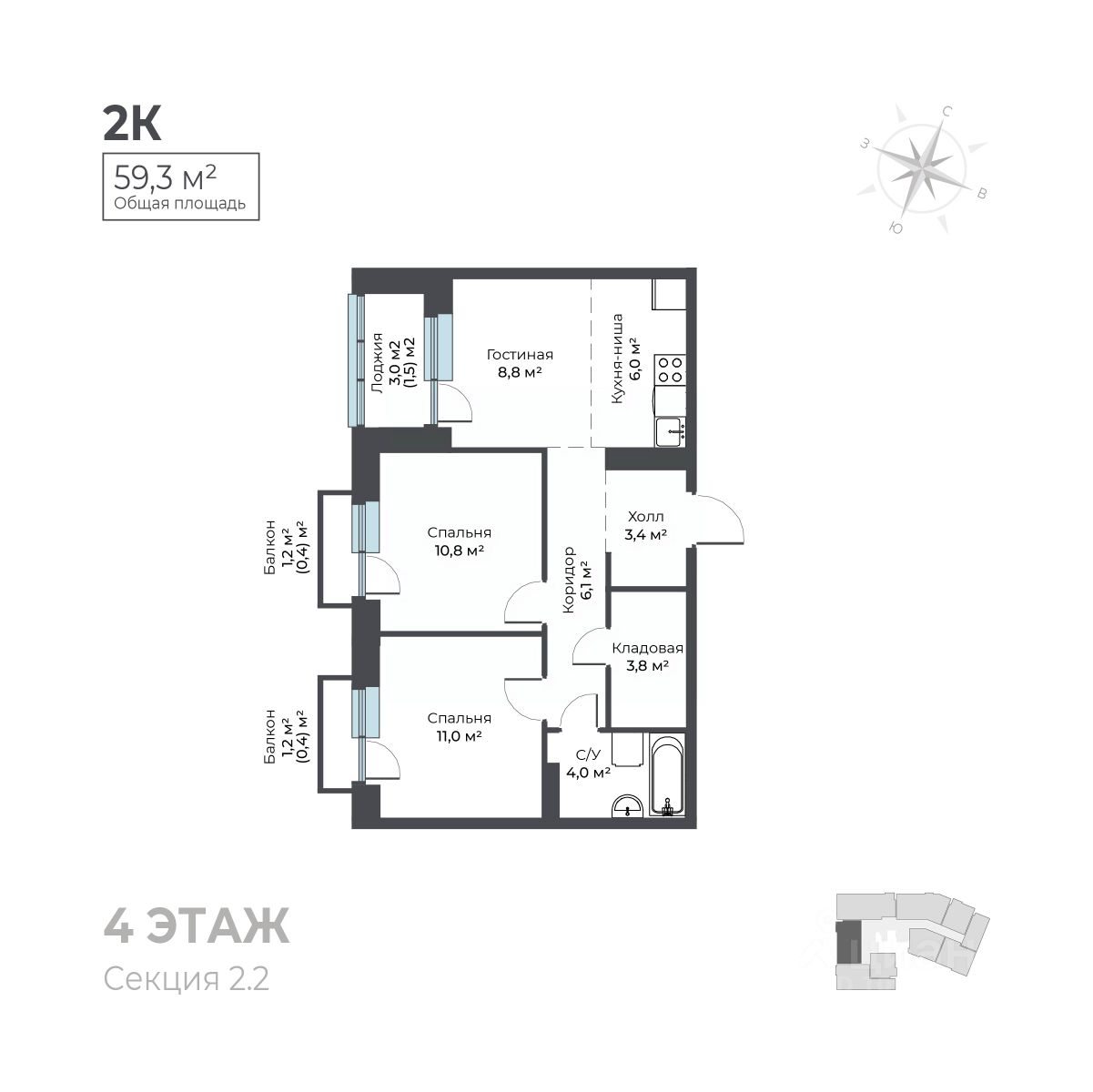 Общая площадь59,3 м²