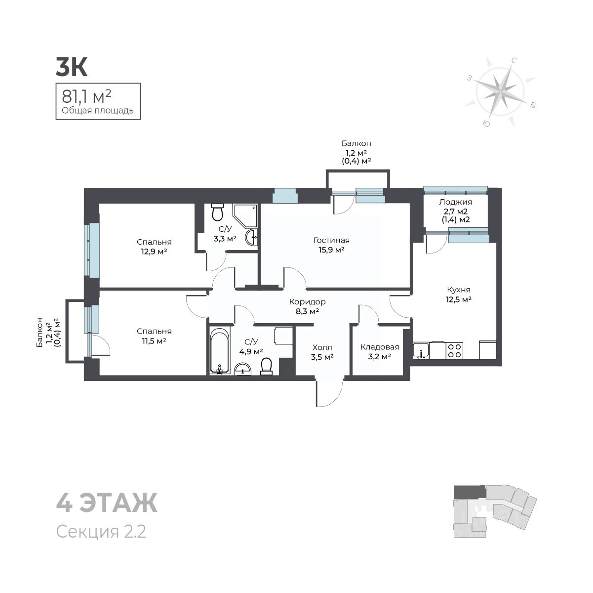 Общая площадь81,1 м²