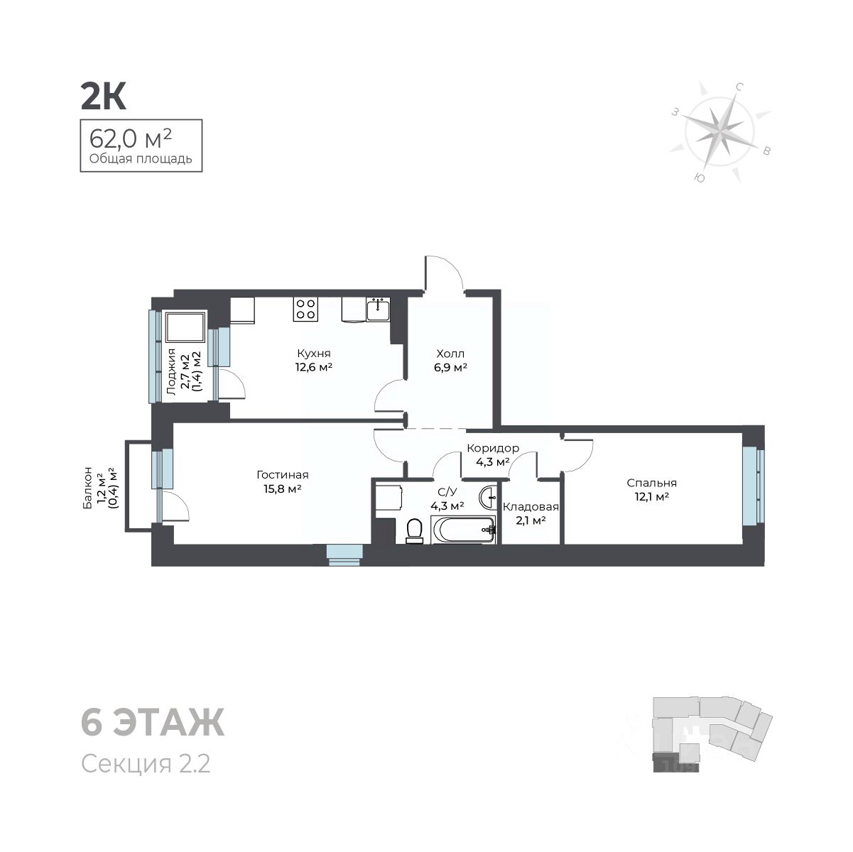 Общая площадь62 м²