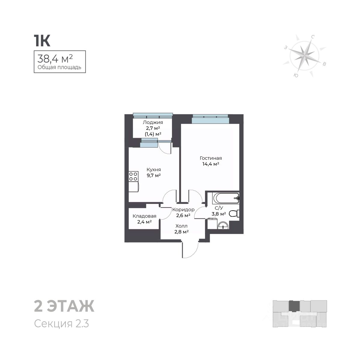 Общая площадь38,4 м²