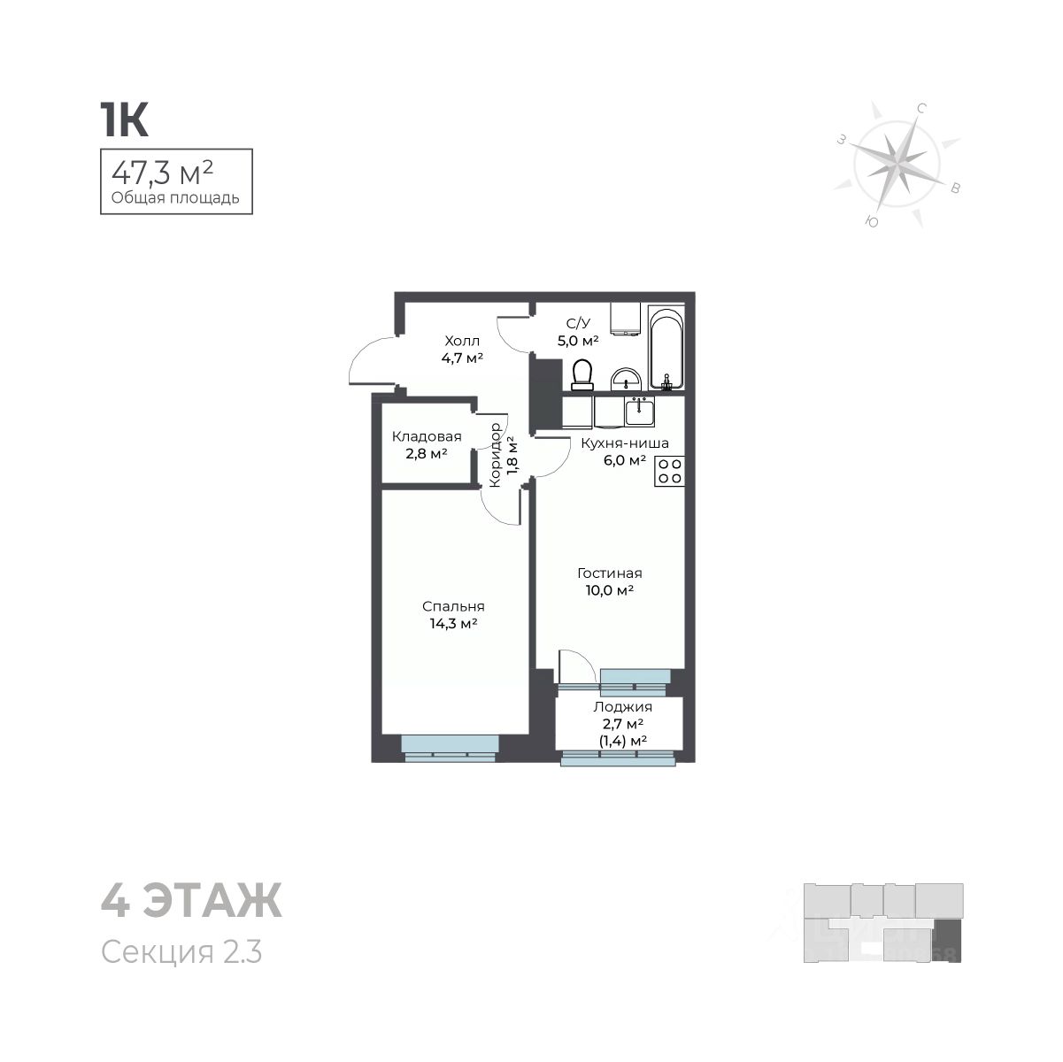 Общая площадь47,3 м²