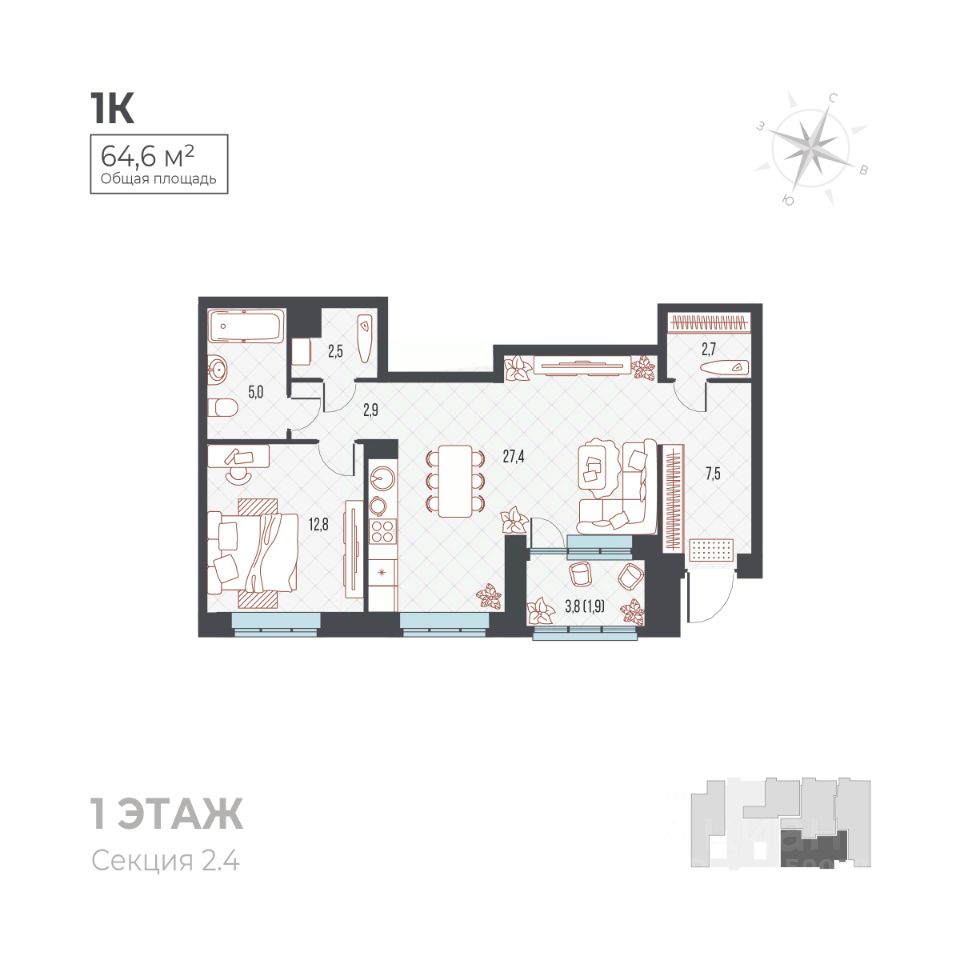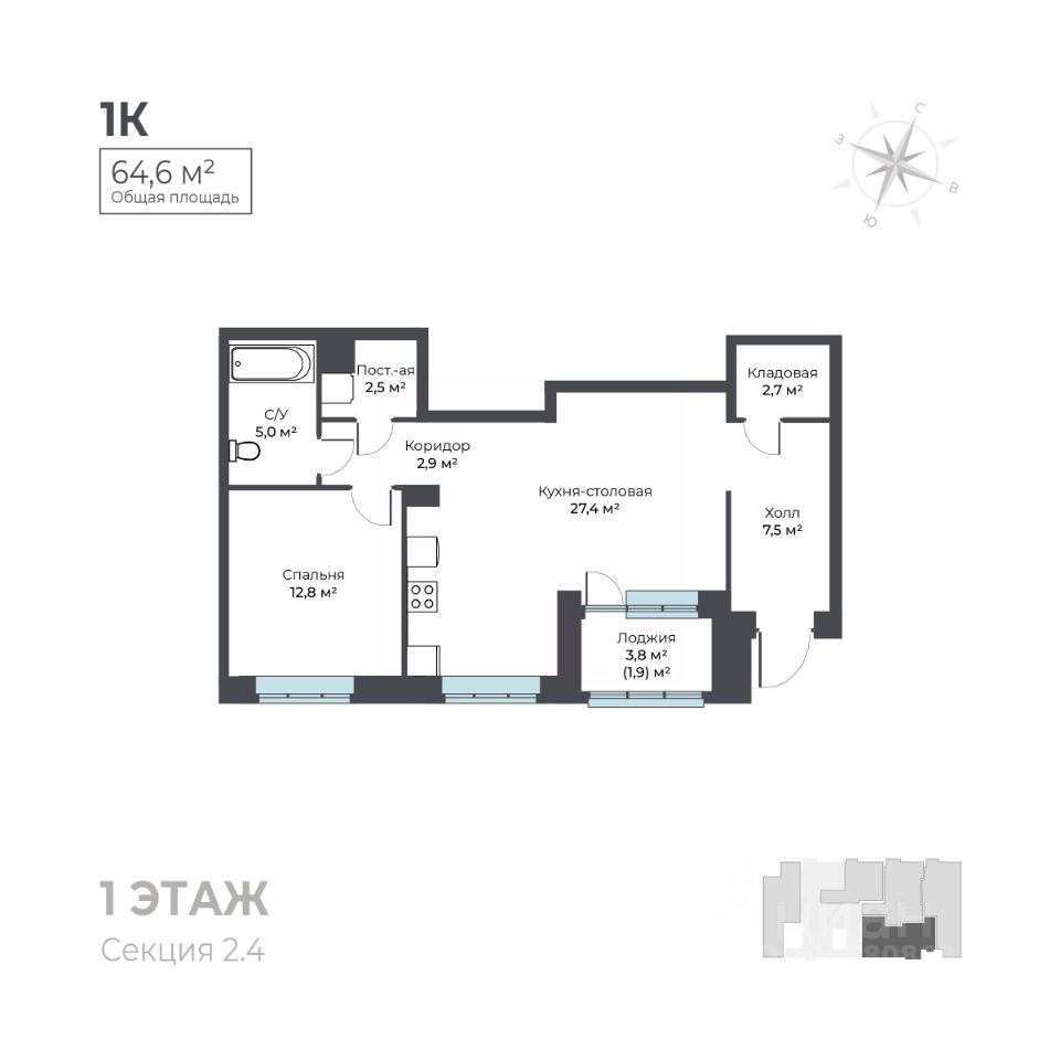 Общая площадь64,6 м²